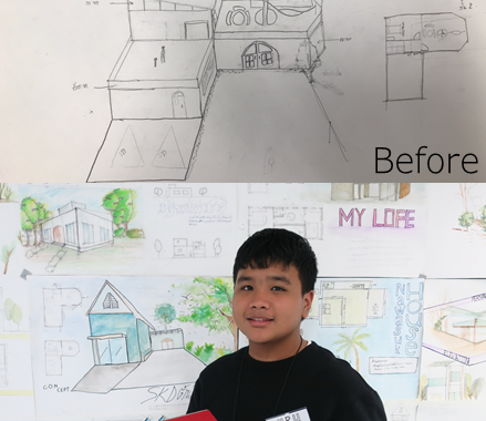 กิจกรรมในวันแรก ช่วงเช้าเป็นการให้ความรู้เกี่ยวกับอาชีพสถาปนิก และการเรียนการสอนของสาขาสถาปัตยกรรม หลังจากนั้นเป็นการดูงานสถาปัตยกรรมบ้านเรือนไทย ช่วงบ่ายบรรยายกระบวนการก่อสร้างบ้านให้นักเรียนได้ทราบขั้นตอนการทำงาน และสถาปนิกเกี่ยวข้องอย่างไร หลังจากนั้นเป็นการรีวิวการเรียนการสอนวิชาออกแบบสถาปัตยกรรม ให้นักเรียนได้เห็นถึงกระบวนการเรียนว่าเป็นอย่างไร ตั้งแต่ได้โจทย์ จนส่งโปรเจค จากนั้นได้ให้นักเรียนได้ลองเล่นเป็นนักเรียนสถาปัตย์ โดยให้ทำ sketch design ในหัวข้อบ้านในฝันของฉัน ซี่งให้น้องๆสื่อความคิดออกมาอย่างอิสระตามศักภาพของตัวเอง ก่อนที่จะนำงานมาพัฒนาในวันต่อไป.